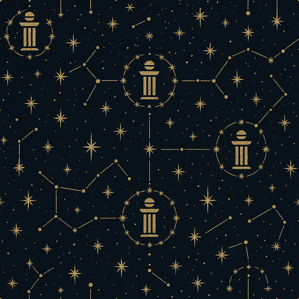 • Subtle cyan constellation lines linking nodes
